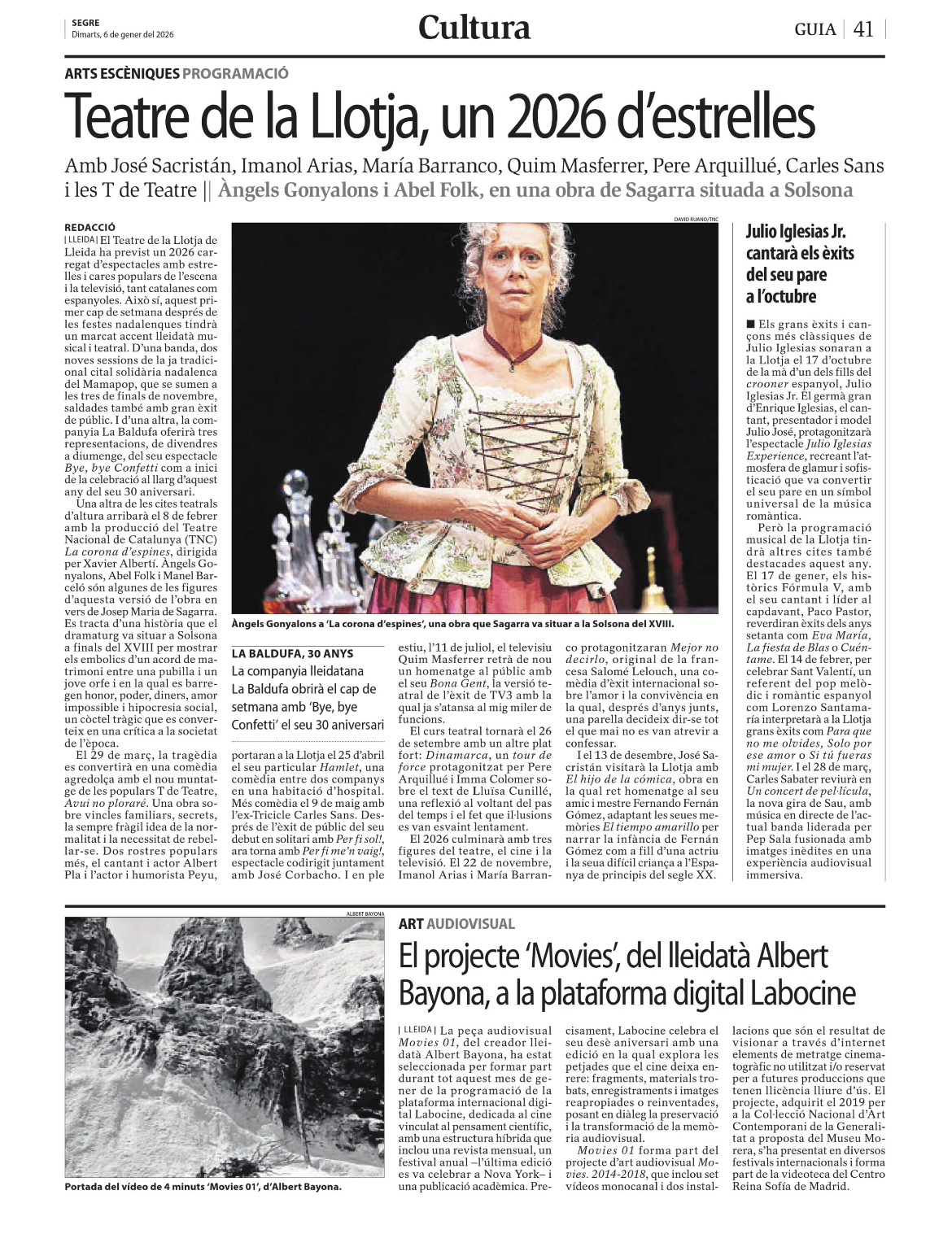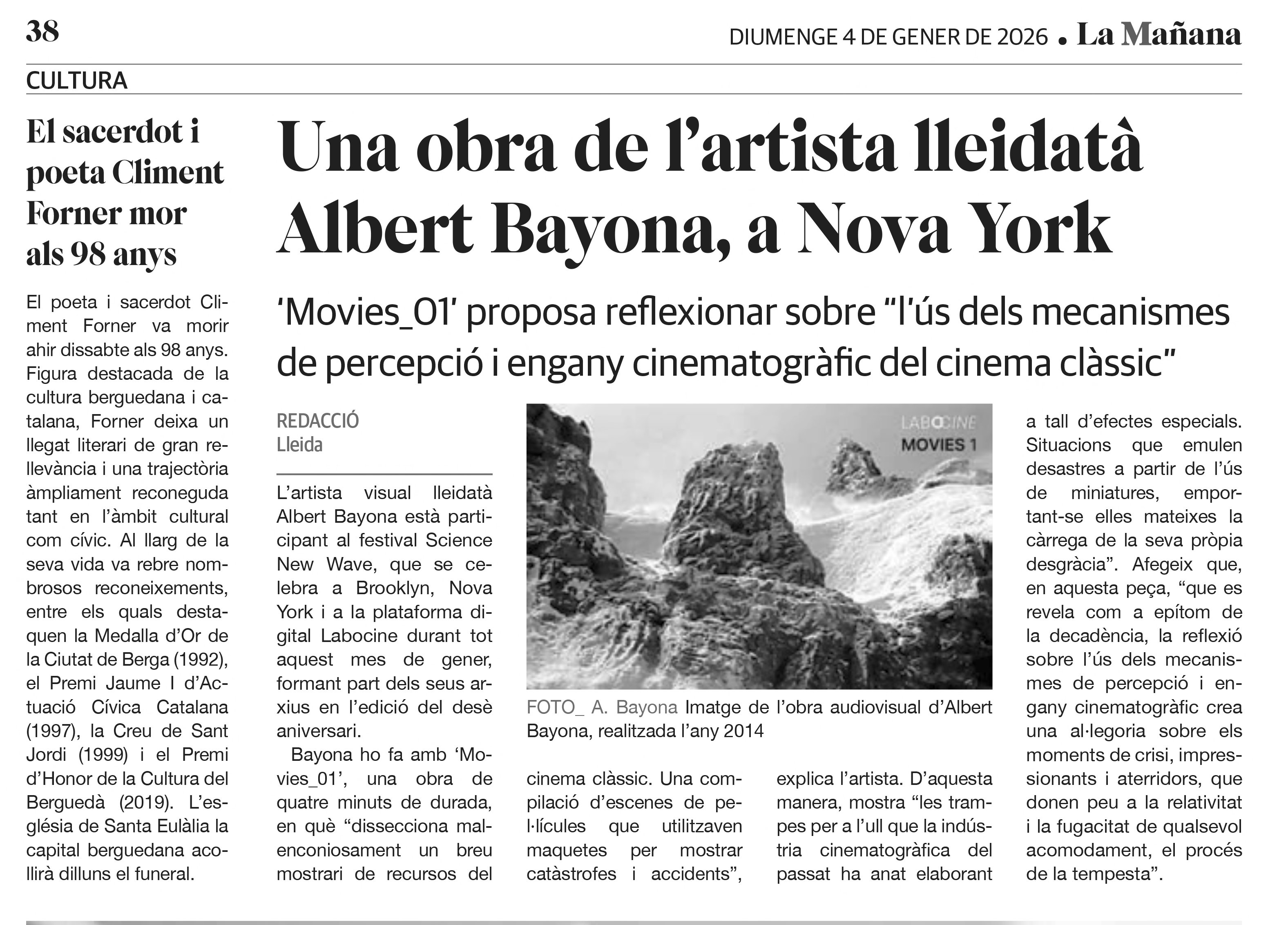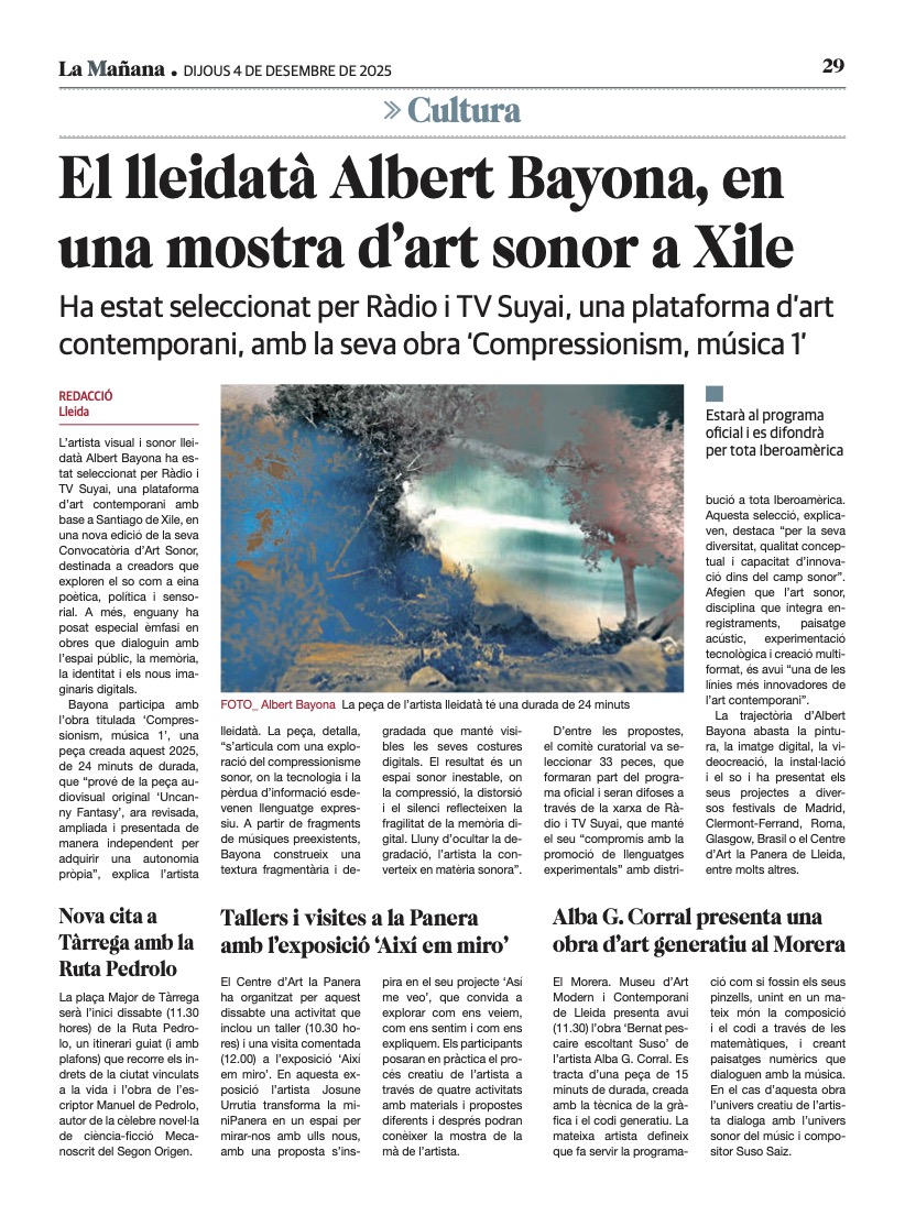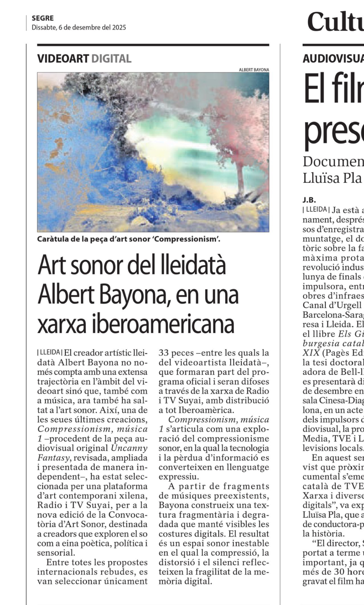 Una xarxa iberoamericana estrena art sonor d'Albert Bayona.Diari Segre. 13.1.2026